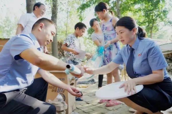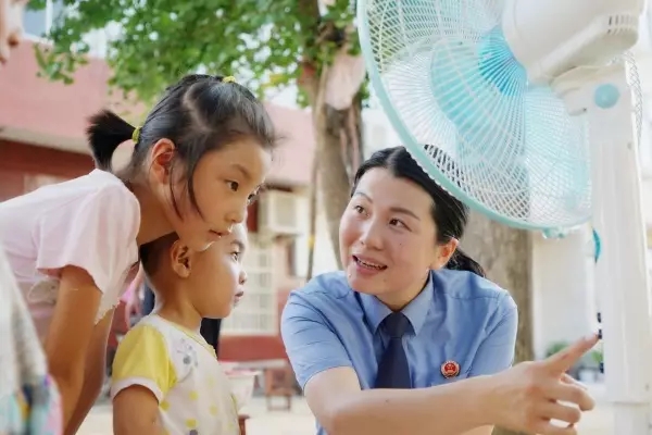 2017年7月13日下午,市检察院兼职驻光山县孙铁铺镇蒋楼村第一团支部书记丁璐顶着烈日,给该村贫困户的留守儿童送来了电风扇、沐浴露和驱蚊水等生活用品。