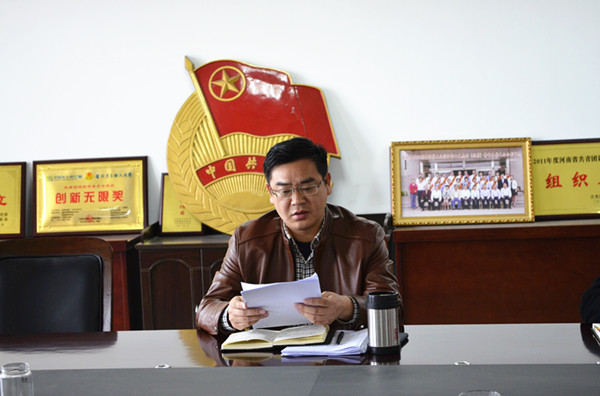 会上,传达学习了共青团十七届五中全会精神、省委副书记邓凯同志和团省委副书记李若鹏同志在团省委全会上的重要讲话精神。