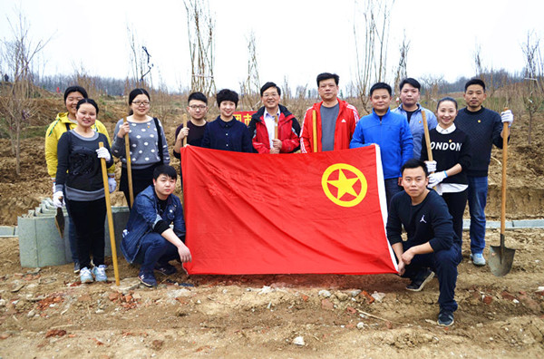 在植树现场,大家三四人一组,有的扶苗,有的培土,各个环节衔接有序,配合默契,真正是劲往一处使、汗往一处流,充分发扬了团结、互助、友爱的精神。团市委班子成员身先士卒、奋勇当先、干劲十足,起到了表率作用。经过一下午的挥汗奋战,一排排新栽种的苗木错落有致、迎风挺立,为大地增添了一片生机勃勃的绿色。