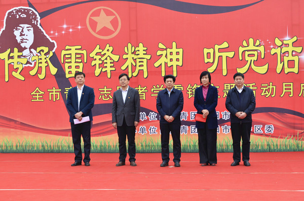在“向雷锋同志学习”54周年纪念日即将到来之际, 3月3日,由团市委主办、团平桥区委承办的全市“传承雷锋精神•听党话跟党走”青年志愿者学雷锋主题活动月启动仪式在平桥世纪广场隆重举行,市委常委、政法委书记、副市长谢天学,团市委书记谷光亚,团市委副书记刘伟,平桥区委副书记徐晓,平桥区委常委、政法委书记周伸基及来自机关事业单位、爱心企业、高校、社会团体共计800余名青年志愿者参加了启动仪式。
