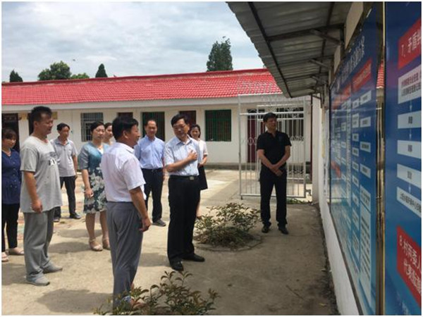 谷书记一行首先来到了晏河乡李畈村,见到了县新华书店派驻驻该村第一团支部书记李猛,了解到他自驻村以来,迅速的转换角色,从一名普通的单位职工转变为基层农村第一团支部书记,全身心地投入到助力脱贫攻坚工作之中。当谷书记得知村里面建档立卡贫困户13户41人的所有档卡都是由李猛独自一个人完成的之后,对他的这种扎实认真的工作态度大为称赞。谷书记认真的翻阅贫困户档案