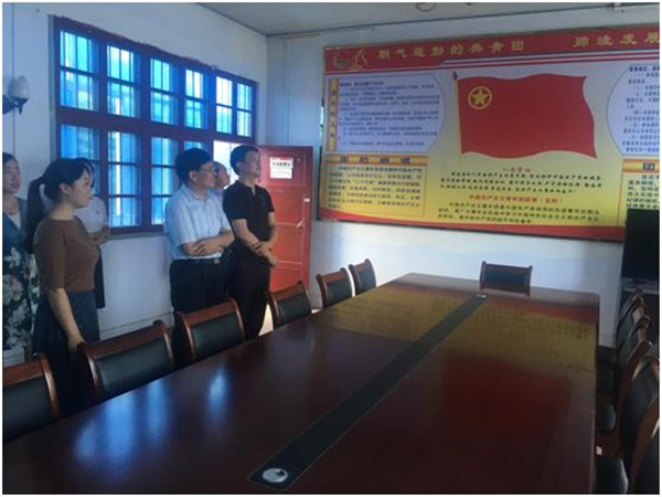 在帅洼村村部,由县发投公司派驻该村的第一团支部书记周雨虹详细介绍了驻村后共青团阵地建设、活动开展、帮扶贫困户工作及在校中小学生、留守儿童情况。交流中,谷书记对该村第一团支部书记助力脱贫攻坚工作给予了充分肯定,要求驻村第一团支部书记在做好工作的同时要及时总结和归纳。随后,谷书记等看了该村土地专业合作社、九架岭农林茶专业合作社及脱贫攻坚工作档案,询问合作社带动贫困户脱贫情况。