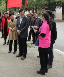 团市委书记谷光亚到浉河区参加“传承雷锋精神?听党话跟党走”志愿服务进社
