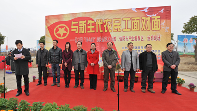 2012-03-30 14:22:43面对面情系农民工 同心圆爱撒集聚区 团市委开展与新生代农民工面对面同心圆走进产业集聚区活动 3月21日上午,共青团信阳市委、信阳工业城联合举办了......