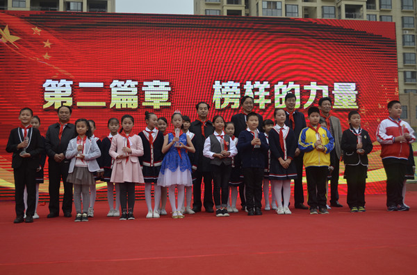 “榜样的力量”篇章中,与会领导为信阳市第四届“十佳少先队辅导员”、“十佳少先队员”进行了颁奖,信阳文新茶叶有限公司董事长刘文新向每位“十佳少先队辅导员”称号获得者发放了“红领巾文新奖”奖金5000元。