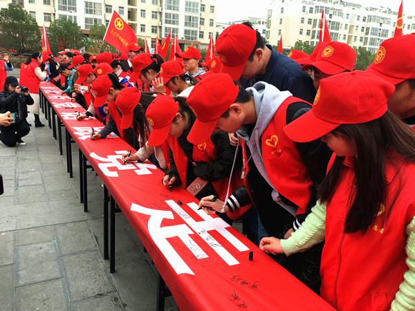 启动仪式上,谢天学为信阳青年志愿者文明城市创建突击队授总队旗,青年志愿者代表作了表态发言,全体志愿者进行了宣誓。谷光亚代表团市委向全市广大青年志愿者表示了亲切的问候,并提出了三点希望:一是以身作则,做文明守纪的引领者;二是真抓实干,做文明创建的推动者;三是身体力行,做文明新风的传播者。