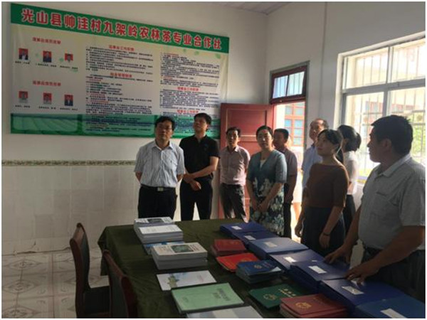 在帅洼村村部,由县发投公司派驻该村的第一团支部书记周雨虹详细介绍了驻村后共青团阵地建设、活动开展、帮扶贫困户工作及在校中小学生、留守儿童情况。交流中,谷书记对该村第一团支部书记助力脱贫攻坚工作给予了充分肯定,要求驻村第一团支部书记在做好工作的同时要及时总结和归纳。随后,谷书记等看了该村土地专业合作社、九架岭农林茶专业合作社及脱贫攻坚工作档案,询问合作社带动贫困户脱贫情况。