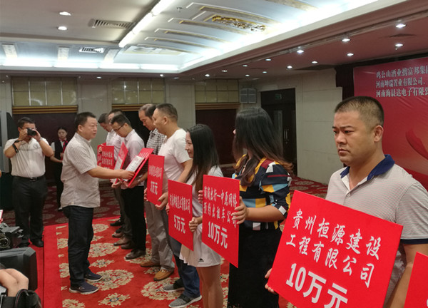 发布会上,鸡公山酒业负责人介绍了“鸡公山酒业百万义卖”活动,谷光亚、周启超、刘伟向爱心企业人士颁发荣誉证书。爱心企业代表分别作了发言,谷光亚发表讲话。