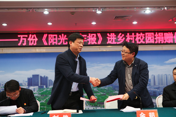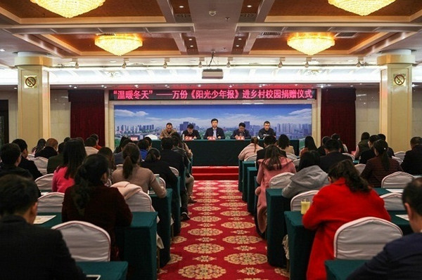 据悉,此次万份《阳光少年报》进乡村校园捐赠仪式是2017信阳市共青团组织“温暖冬天”活动的重要内容,也是共青团助力脱贫攻坚的有效举措。《阳光少年报》是由河南广播电视台主管、东方今报社主办的正式刊物,是以新闻故事为抓手,以人格培养为目的,把全球新闻用孩子喜欢看、能看懂的方式,讲给孩子听,带孩子学习成长的刊物。此次活动以信阳第一团支书所在144个非贫困村小学为重点,先期爱心捐赠的5000份《阳光少年报》(半年),也将陆续送到信阳乡村孩子们的手中。
